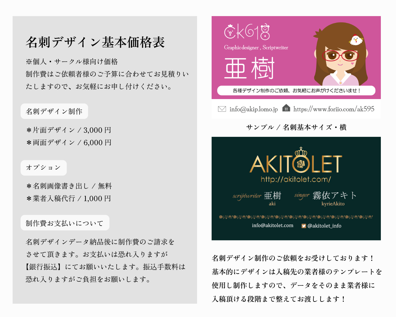 デザインは修正なしで、全てデザイナーのおまかせ制作となります。
